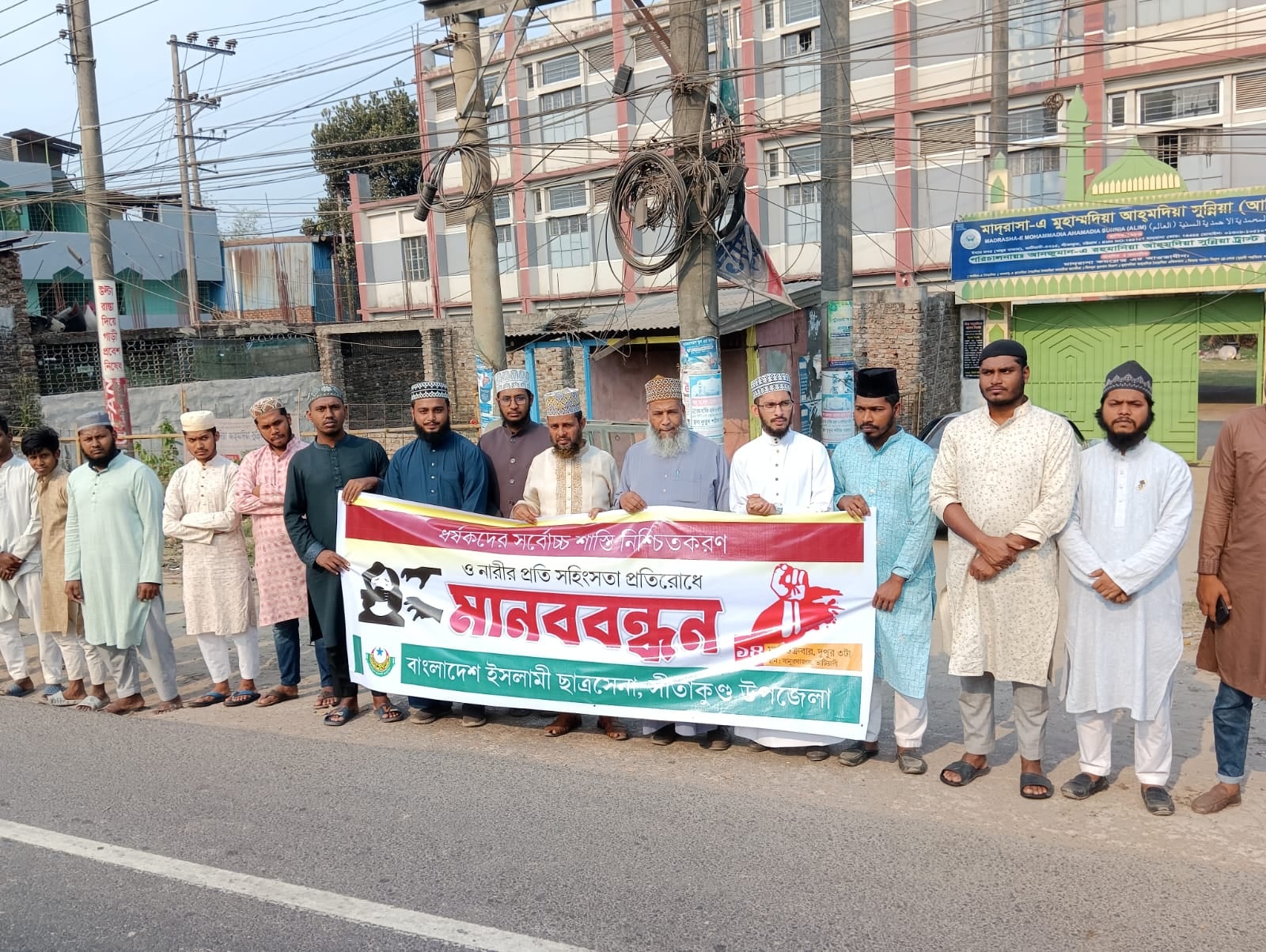 সারাদেশে চলমান ধর্ষণ ও সহিংসতার বিরুদ্ধে সীতাকুণ্ডের ভাটিয়ারি বানুরবাজারে বাংলাদেশ ইসলামী ছাত্রসেনা সীতাকুণ্ড উপজেলার উদ্যোগে মানববন্ধন অনুষ্ঠিত হয়। এই সময় বক্তারা বলেন, ধর্ষণ রোধ করতে হলে ইসলামী আইন বাস্তবায়নের বিকল্প নেই।