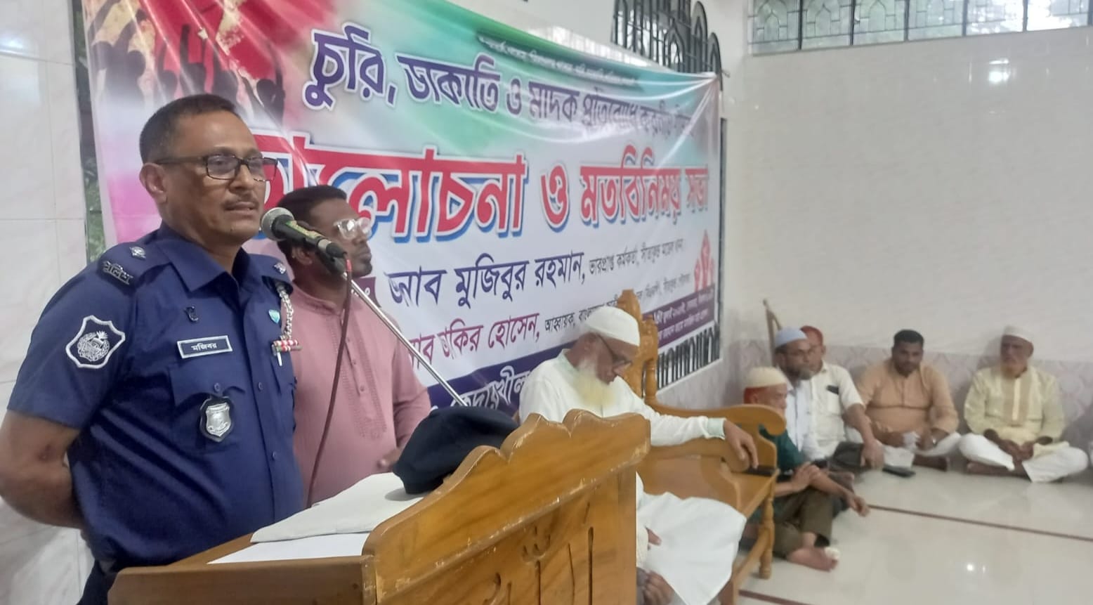 প্রধান অতিথি ওসি মুজিবুর রহমান বলেন, সমাজে সুশৃঙ্খলা ফিরে আনতে প্রতিটি অভিবাবকদের কে সচেতন হতে হবে, আপনাদের সন্তান বড় হলে তাদের প্রতি তীক্ষ নজর রাখতে হবে, তারা লেখাপড়া শেষে কোথায় যায়,কার সাথে মিশে, খবর রাখতে হবে। চুরি, ডাকাতি, নেশা অভ্যস্থ নেশা বিক্রেতা কারো সাথে মিশতে দেয়া যাবেনা। এসবে যারা জড়িত তাদের কে চিক্রিত করে আইন শৃঙ্খলা বাহিনীর হাতে সোপর্দ করুন অথবা গোপনে তাদের নাম আমাদের কাছে দিবেন, আমরা সুযোগবুঝে গ্রেফতার করে আইনগত ব্যবস্হা নেবো। এতে আমাদের কোন ছাড় নেই ও থাকবে না।